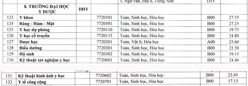 Cập nhật điểm chuẩn Đại học Y dược - Đại học Huế 2020: