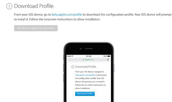 Tiếp theo, bạn mở trình duyệt Safari trên iPhone, iPad và truy cập vào địa chỉ https://beta.apple.com/profile để tải về profile nhà phát triển, chọn Install để cài đặt.