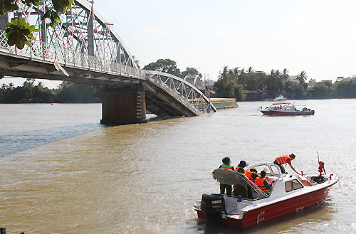 13h, một cảnh sát cứu hộ cho biết, thông tin ban đầu ghi nhận có 4 xe máy bị rơi xuống nước. Trong các nạn nhân có một người tự bám vào thanh sắt cầu leo lên. Hiện chưa xác định 2 nạn nhân được cứu là người của sà lan hay người qua cầu, cũng như có hay không nạn nhân mất tích dưới sông.