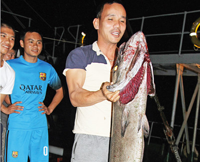 Cá câu được đủ loại, cá thu, cá lưỡng, cá ngừ, cá thu bè… mỗi con nhỏ nhất cũng 5 kg, có con hàng yến và lớn là một tạ. Thời gian câu cá kéo dài từ 18 giờ hôm trước đến 2 giờ sáng hôm sau mới kết thúc, cá câu được bảo quản trong tủ cấp đông cận thận. Phần làm cơm ăn, phần san sẻ để đoàn công tác mang lên đảo làm quà cho các chiến sĩ. Hầu hết các bữa cơm trên biển luôn có vị cá tươi Trường Sa, không còn cảnh thiếu thốn và trống vắng giữa biển nước mênh mông.