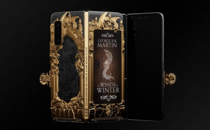 Thoạt nhìn có thể thấy, Galaxy Fold phiên bản đặc biệt của Caviar được dát vàng khá đẹp mắt. Trong đó, phần thân có nhắc đến bộ tiểu thuyết "A Song of Ice and Fire" đã được chuyển thể thành series phim ăn khách nhất trên HBO. Còn lớp vỏ của máy lấy ý tưởng từ tập truyện The Winds of Winter. Caviar cho biết, hãng sẽ phát hành 7 mẫu thiết kế độc đáo khác nhau tương ứng với 7 vương quốc thuộc lục địa Westeros trong series phim Game of Thrones. Hiện hãng đã cho đặt hàng trước.