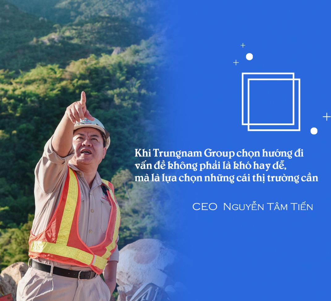 Ông Nguyễn Tâm Tiến: Khi Trungnam Group chọn hướng đi, vấn đề không phải là khó hay dễ, mà là lựa chọn những cái thị trường cần. Ở đâu có cơ hội, Trungnam Group sẽ đầu tư. Nơi nào có lợi nhuận, có tiềm năng phát triển, Trungnam Group sẽ tìm tới. Không doanh nghiệp nào từ chối cơ hội để làm ăn nhưng càng có lợi nhuận cao thì sẽ có càng nhiều rủi ro.