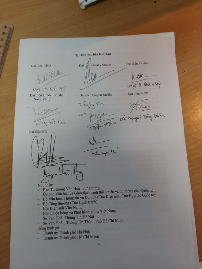 8 đơn vị khiếu nại gồm BHD, Galaxy, Skyline, Golden Media, Saigon Media, MVP, Early Risers và công ty VAA.