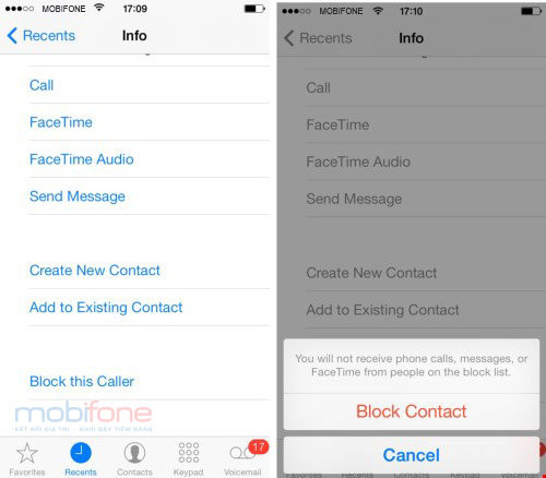 Trên hệ điều hành IOS, Apple cho phép người dùng chặn các số điện thoại quấy rối chỉ với vài thao tác đơn giản. Nếu đã lưu số người đó trong danh bạ, người nhận chỉ cần mở số liên lạc cần chặn và chọn Block this Caller > Block Contact. Ngoài ra, cũng có thể tìm trong nhật ký cuộc gọi, chạm vào biểu tượng chữ “i” bên cạnh số điện thoại lạ rồi thực hiện tương tự.