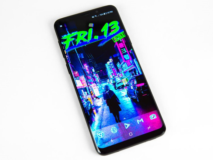 Màn hình của Samsung Galaxy S9. Chiếc điện thoại này sở hữu màn hình Super AMOLED rất sắc nét, thể hiện màu sắc tốt.
