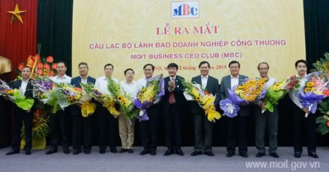 Ông Vũ Hùng Sơn (ngoài cùng bên phải) được giới thiệu là Thư ký Bộ trưởng kiêm "Phụ trách văn phòng Bộ". Ảnh: MOIT