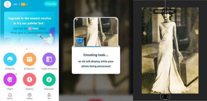 Hình ảnh hoàng tử Vĩnh Thụy tới Pháp năm 1922 đã xử lý qua Remini. Hiện tại, ứng dụng này cho phép người dùng phục hồi 5 ảnh miễn phí mỗi ngày.