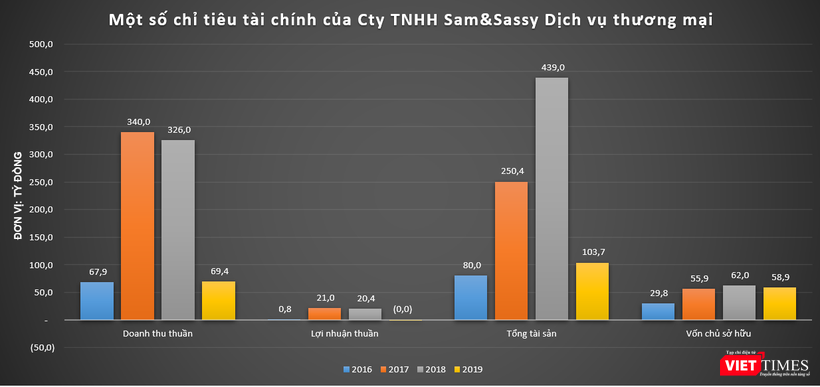 Cụ thể, công ty này ghi nhận doanh thu đạt 340 tỉ đồng, cao gấp 5 lần so với năm 2016, đồng thời báo lãi tới 21 tỉ đồng. Năm 2018, doanh thu của Sam&Sassy giảm về mức 326 tỉ đồng, báo lãi 20,4 tỉ đồng.