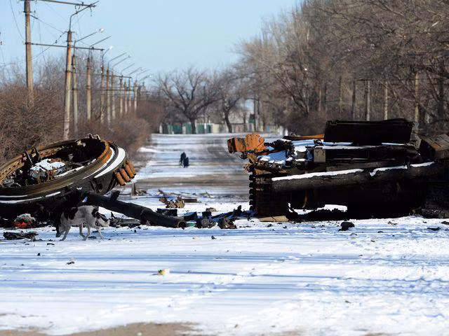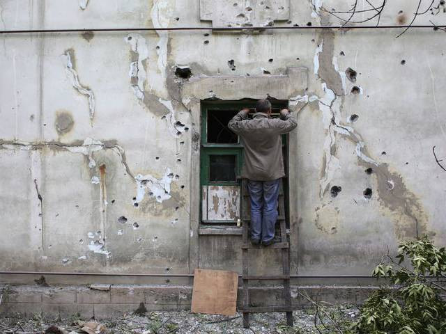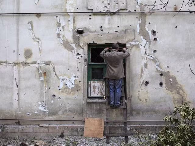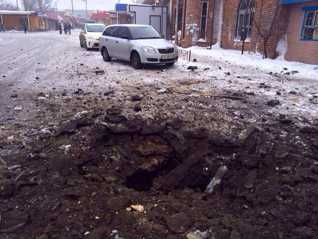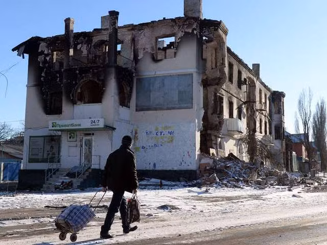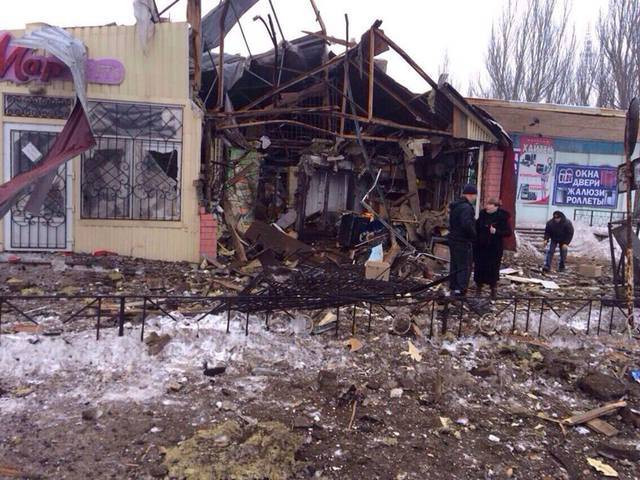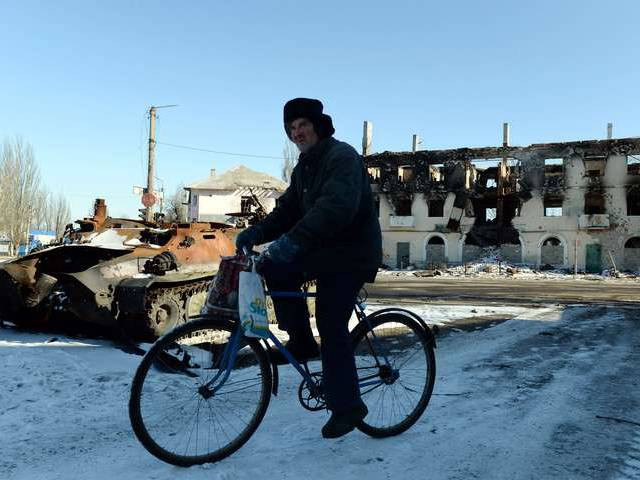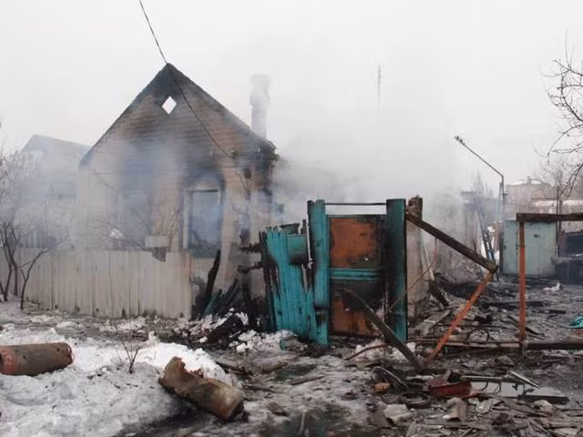 Khu dân cư bị phá hủy ở Uglegorsk, 6 km phía tây cách Debaltsevo