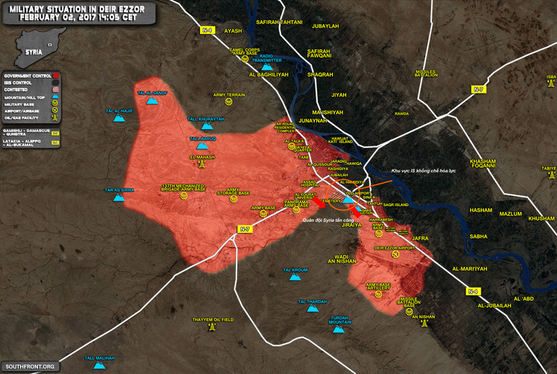 Như vậy, với kết quả đạt được, quân đội Syria chọc thủng được vòng vây xung quanh sân bay quân sự thành phố trên hướng bắc của Deir Ezzor, nhưng vẫn bị khống chế bởi các nhóm chiến binh IS trên những ngọn đồi nhìn xuống khu vực này. Những cao điểm trên sẽ là mục tiêu khó khăn cho tấn công tiếp theo của quân đội Syria.