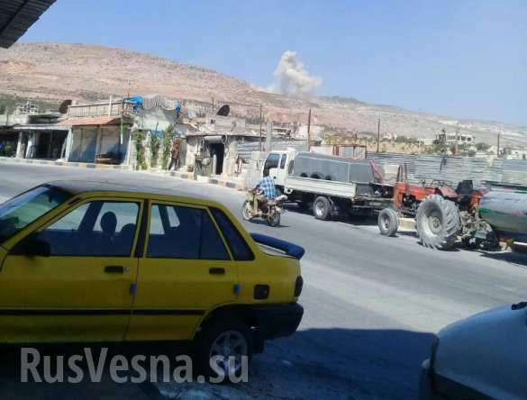 | Không quân Nga - Syria bắt đầu đánh phá chiến tuyến của lực lượng Hồi giáo cực đoan. Ảnh trang tin Iba'a, cơ quan truyền thông của HTS, Rusvesna đăng tải. |