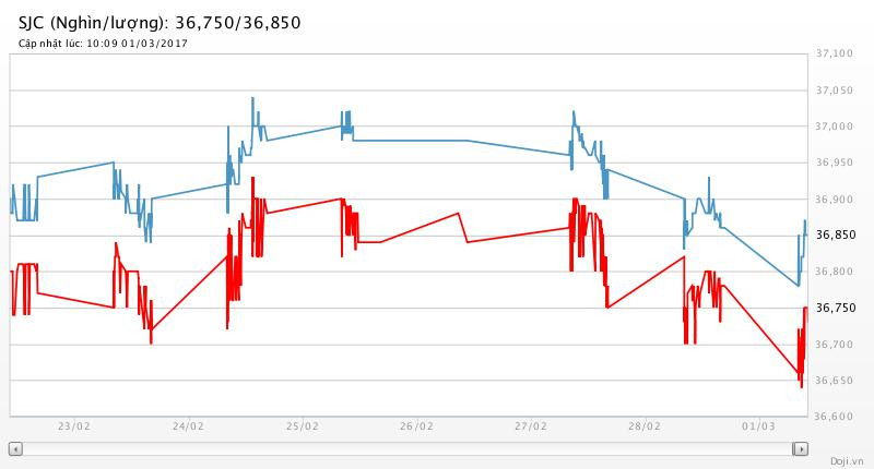 Tương tự, tại các đại lý của Doji, giá vàng miếng SJC chỉ được tập đoàn này điều chỉnh giảm 30 nghìn đồng chiều mua và 10 nghìn đồng chiều bán về yết ở 36,75 – 36,85 triệu đồng/lượng (MV-BR) đối với giao dịch lẻ; và đắt hơn 10 nghìn đồng chiều mua, đồng thời rẻ hơn 10 nghìn đồng chiều bán đối với giao dịch buôn ở thị trường Hà Nội. Theo đó, doãng chênh lệch 2 chiều mua - bán ở Doji đang là 100 nghìn đồng/lượng.