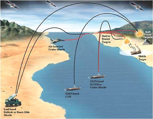 Mỹ nỗ lực tích hợp hệ thống “đòn tấn công thần tốc toàn cầu” với hệ thống phòng thủ vũ trụ và hệ thống phòng thủ tên lửa để hình thành một siêu hệ thống. Dưới lá chắn của hệ thống tấn công và phòng thủ toàn cầu, vũ khí tiến công chiến lược của các cường quốc, bao gồm cả vũ khí hạt nhân trở thành vô dụng.