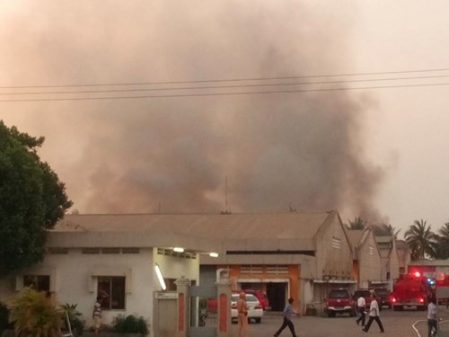 Hiện trường đang được phong tỏa. Nhưng nhìn từ xa cũng thấy khói từ đám cháy bốc lên cao, dày đặc.