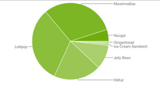 Ngay cả Jelly Bean (4.1; 4.2 và 4.3), một phiên bản Android ra mắt cách đây 5 năm cũng được sử dụng thường xuyên hơn Nougat, với 10,1% thiết bị di động đang chạy hệ điều hành này. Android KitKat (4.4) và Marshmallow (6.0) nắm giữ 20% và 31,2% thị phần.