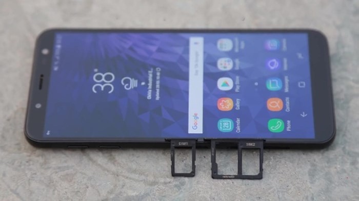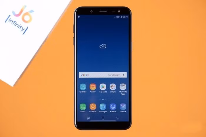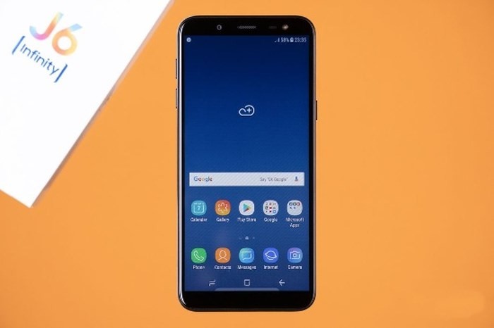 Mặt trước Galaxy J6 không còn phím cứng home, cảm biến vân tay đã chuyển ra mặt sau, hơi tiếc khi máy vẫn sử dụng cổng microUSB.