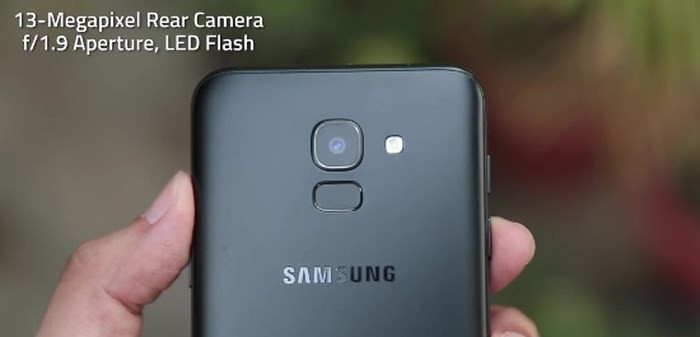 Samsung Galaxy J6 chỉ có một camera đơn 13MP ở mặt sau, ống kính khẩu độ f/1.9 cho khả năng chụp thiếu sáng tốt hơn, hỗ trợ đèn flash LED đơn và lấy nét tự động AF.