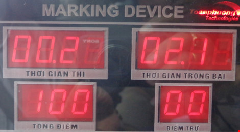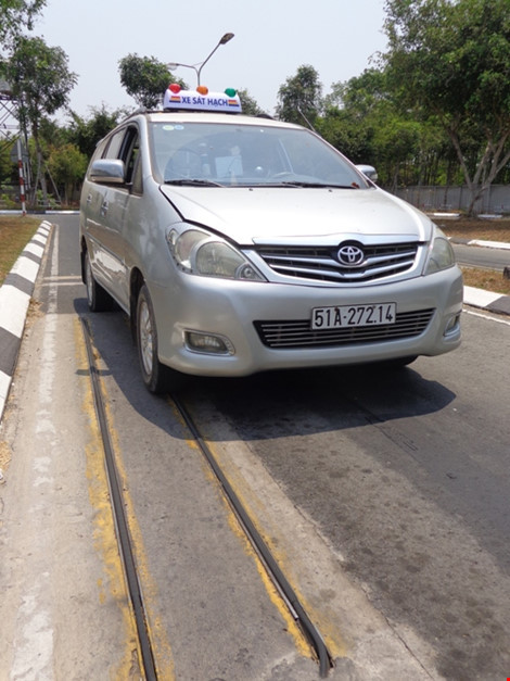 Đến 1-7 mới thực hiện chấm điểm tự động, giám sát bằng "mắt thần" với bài thi đi trên đường trường. Nhưng ngay từ các khóa học trong tháng 4 này, Trường lái xe Tiến Bộ và Trung tâm sát hạch Củ Chi đã dạy, sát hạch thử thí sinh lái xe đi đường trường dưới sự giám sát của các thiết bị trên. Trong ảnh, thí sinh dừng xe quá 30 giây khi đèn xanh ở ngã tư đã mở và phía trước không bị cản trở thì sẽ bị trừ điểm ngay.