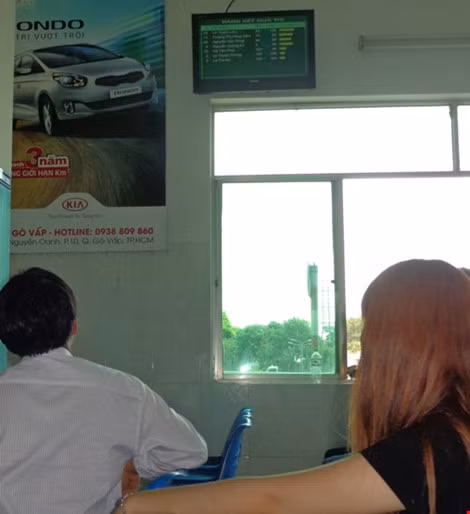 Bước ra sân thi sát hạch, người nhà, “cổ động viên” đi cùng bị cách ly hoàn toàn với người thi nên chỉ còn cách theo dõi người thân qua màn hình báo kết quả thi gắn ở phòng cách ly.
