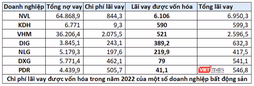 Trường hợp của Novaland ở đầu bài viết là một ví dụ về việc chi phí lãi vay được vốn hóa ở nhóm các doanh nghiệp bất động sản.