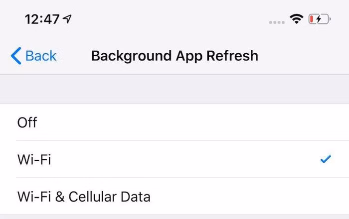 Để làm điều đó, mở Settings > General > Background App Refresh rồi chọn Wi-Fi thay vì Wi-Fi & Cellular Data.