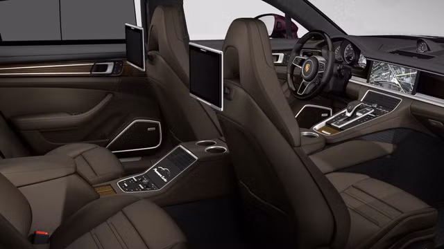 Các tùy chọn nổi bật cho nội thất Porsche Panamera Turbo Executive 2017 bao gồm kính cách âm (1.240 USD), ghế trước/sau sưởi ấm, thông gió và mát-xa (4.060 USD) hay hệ thống thông tin giải trí cho hàng ghế sau (2.630 USD). Đó là chưa kể đến việc khách hàng có thể tùy chọn các loại da, gỗ, nhôm và sợi carbon khác nhau cho chiếc Porsche Panamera Turbo Executive 2017 của mình.