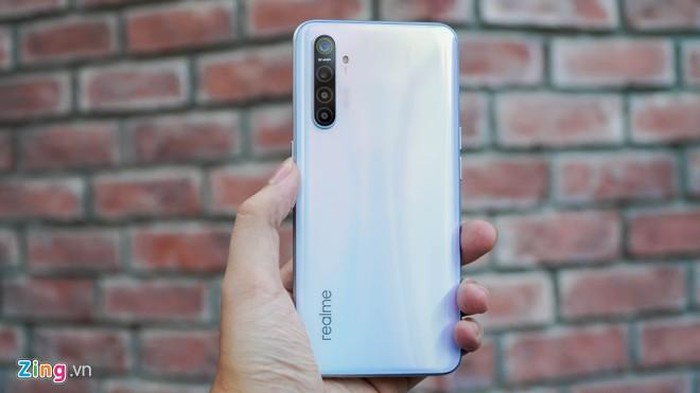 Bên cạnh phiên bản xanh gradient tương tự mẫu Realme 5 Pro, chiếc XT có thêm màu trắng bạch tuyết, khá giống vơíam Huawei P30 Pro. Tuy nhiên, do được hoàn thiện từ chất liệu nhựa giả kính, mặt lưng này bám lại khá nhiều vết bẩn và dễ trầy xước.
