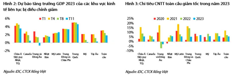 Trong khi đó, IDC – công ty hoạt động trong lĩnh vực CNTT tại Việt Nam – dự báo chi tiêu cho CNTT của doanh nghiệp sẽ giảm tốc xuống còn khoảng 5,6% so với cùng kỳ vào năm 2023 từ mức trên 7% so với cùng kỳ của năm 2022.