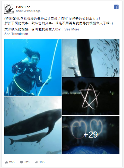 Nhưng đầu tháng 3 vừa qua, bạn của cô đã chia sẻ một bức ảnh trên Facebook khiến cô thực sự ngỡ ngàng. Không khó để cô Tsubakihara nhận ra đó là chiếc máy ảnh cũ. Chiếc Cannon Powershot G12 vẫn nguyên vẹn nhờ sử dụng bao chống nước tuy nhiên nó đã trôi khoảng 250km từ vị trí cô làm rơi sang vùng biển của Đài Loan.