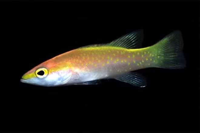 Cá Golden Basslet chỉ được tìm thấy ở Thái Bình Dương và Đại Tây Dương có một màu vàng óng ả vô cùng đặc biệt.