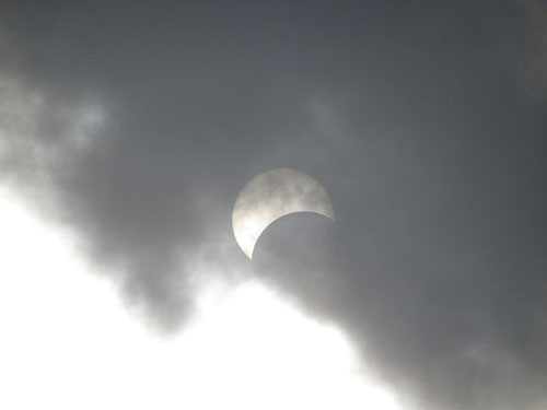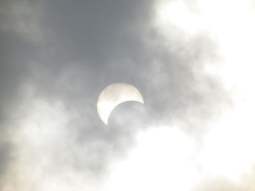 Những lúc có lớp mây đen mỏng kéo qua, rất dễ quan sát nhật thực bằng mắt thường.