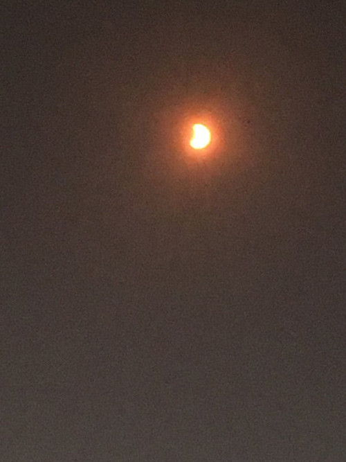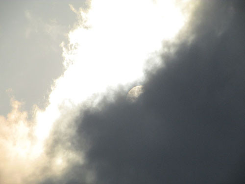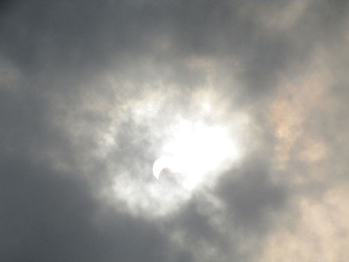 Khi mới bị mây đen che một phần (cũng là phần bị Mặt Trăng che), ánh sáng từ Mặt trời vẫn chói chang.