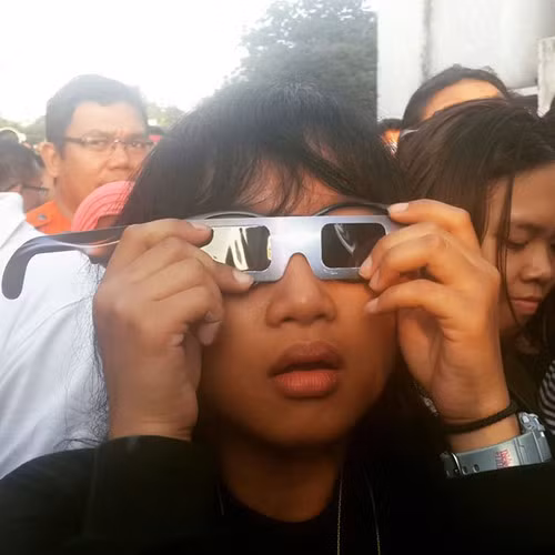 Người dân theo dõi nhật thực ở Jakarta, Indonesia
