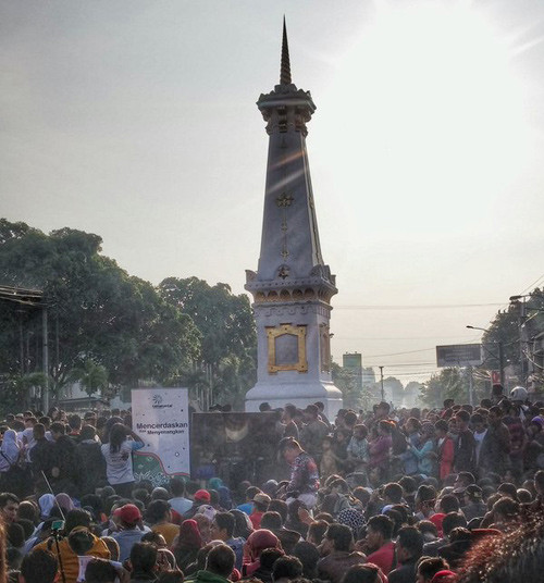 Người dân tập trung theo dõi hiện tượng kỳ thú này lúc 6 giờ sáng ở Palembang - Indonesia.