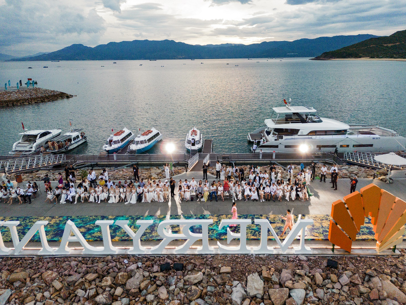 Chiếc cầu tàu uốn lượn từ khu vực Sales Gallery nối dài ra biển, khoác lên mình hình ảnh hoàn toàn khác biệt khi trở thành sàn catwalk chính với chiều dài hơn 300m của Vietnam Beauty Fashion Fest – sự kiện nằm trong khuôn khổ vòng chung kết Miss World Vietnam 2022.