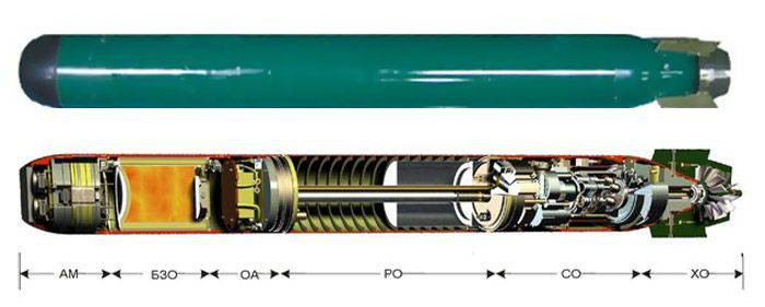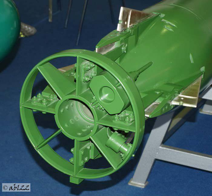 Phần đuôi của ngư lôi là động cơ nhiệt piston trục dọc sử dụng loại nhiên liệu đơn nhất pronit. Động cơ được kết nối với trục chân vịt, phía đuôi là chân vịt và vành bảo vệ. Phía ngoài của vỏ ngư lôi có các cánh điều khiển theo độ sâu vào hướng di chuyển của ngư lôi.