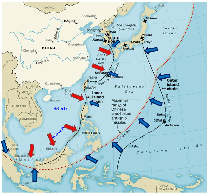 Nhật Bản và Hàn Quốc, trong quá trình thực hiện các hoạt động ngăn chặn Trung Quốc và phòng thủ biển đảo của mình trên thực tế đã hỗ trợ tối đa cho Mỹ. Khi Tokyo và Seoul có thể kiểm soát được mọi tình huống chiến trường ở Đông Bắc Á, lực lượng liên quân Mỹ được giải phóng cho các hoạt động tác chiến ở phía nam. Quân đội Mỹ có thể siết chặt hàng rào xung quanh Biển Đông, phong tỏa và vô hiệu hóa các đảo nhân tạo của Trung Quốc hoặc những hoạt động chiến thuật khác như ngăn chặn các tuyến đường vận tải của Trung Quốc trên Thái Bình Dương hoặc ra Ấn Độ Dương. Tư tưởng chiến lược này sẽ có được ưu thế trong cuộc cạnh tranh chiến lược rộng lớn hơn hoặc một cuộc chiến tranh.