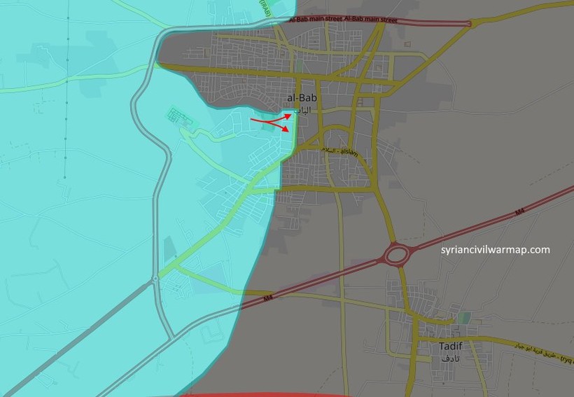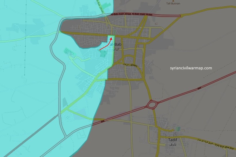 Ngày 22.02.2017, lực lượng Hồi giáo cực đoan thuộc liên minh Lá chắn Euphrates phối hợp với pháo binh và lính đặc nhiệm Thổ Nhĩ Kì đột phá tuyến phòng thủ của khu vực các tòa nhà hành chính thành phố từ vùng ngoại ô phía tây. Trong 5 giờ ác chiến với IS, FSA chiếm lại một trạm bưu điện, bệnh viện, tòa nhà Tòa án và công trình xây dựng, tổ chức lực lượng phòng thủ trong khu vực.