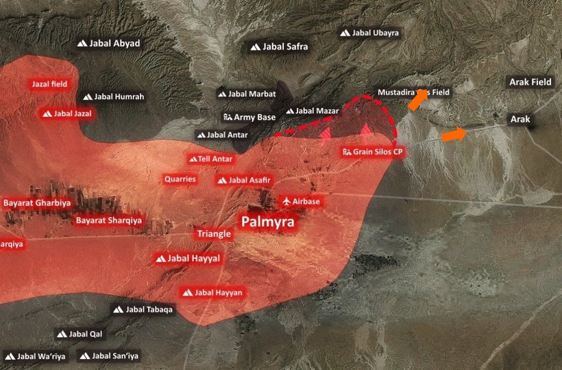 Sau khi giải phóng khu mỏ khí gas Mustadirah, các đơn vị quân đội Syria bắt đầu triển khai tấn công trận địa của IS tại khu vực ngã tư giao lộ Talilah, nằm trên hướng nam của mỏ khí gas Arak.