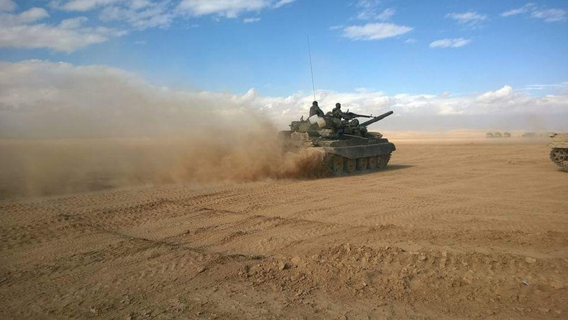 Quân đội hiện đang tấn công IS trên vùng sa mạc phía đông làng Al-Bayarat và phía nam mỏ khí gas Al-Mahr.