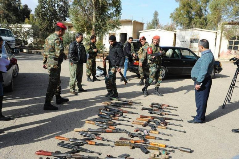 Những chiến binh thánh chiến thực hiện thủ tục giao nộp tất cả các loại vũ khí hạng nhẹ và đạn dược cùng trang bị chiến tranh cho đại diện chính quyền Syria địa phương, ký các văn bản cam kết không tiến hành bất kỳ các hoạt động bất hợp pháp chống lại chính quyền Syria.
