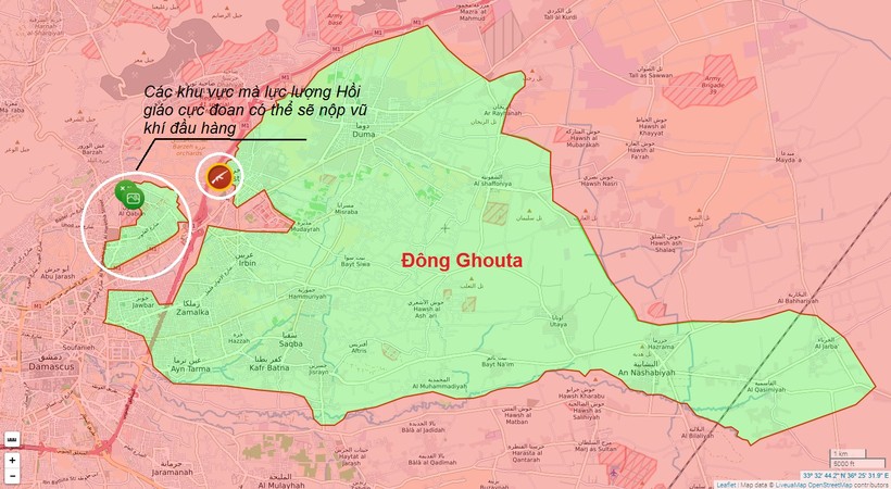 Các điều kiện đầu hàng cho những địa bàn ngoại ô này cũng tương tự như thỏa thuận đầu hàng khu vực Wadi Barada. Các chiến binh thánh chiến giao nộp hai quận Qaboun và Barzeh cho chính quyền Syria, họ sẽ được vận chuyển đến tỉnh Idlib.