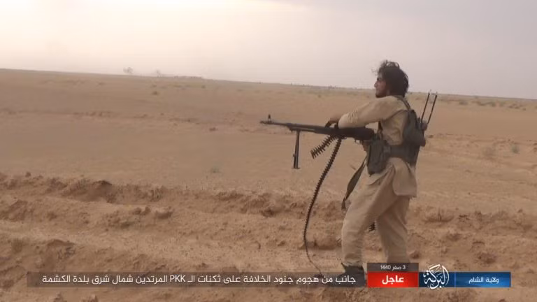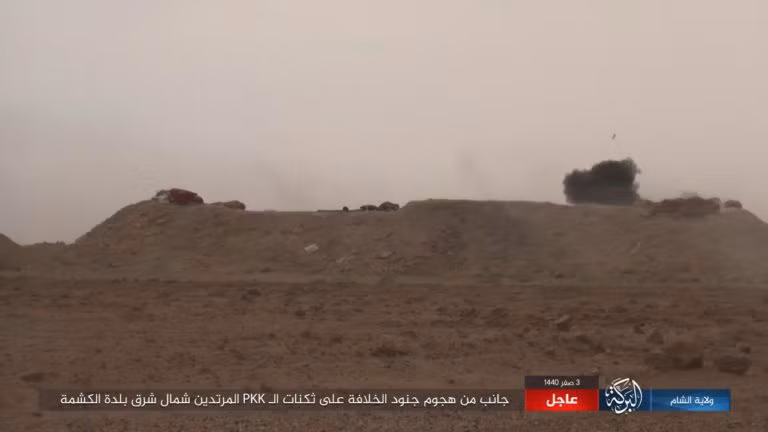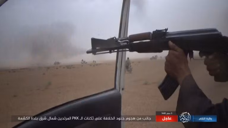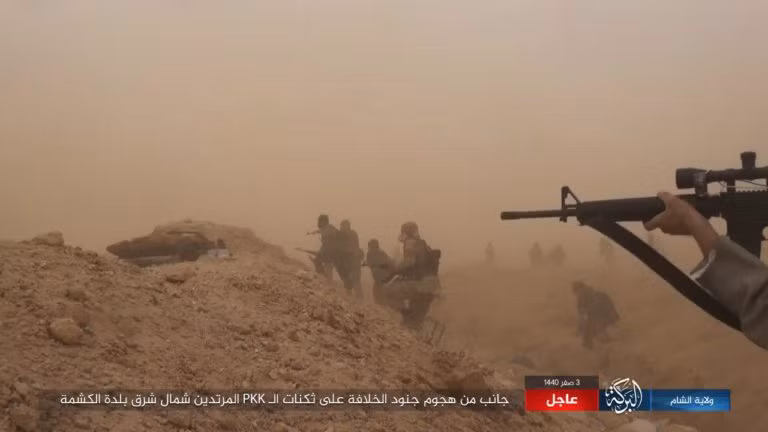 Lợi dụng bão cát và thời tiết xấu, IS bất ngờ tấn công nhiều vị trí của Lực lượng Dân chủ Syria (SDF) do Mỹ hậu thuẫn xung quanh thị trấn al-Kashmah và al-Bahrah. Sau khi đánh chiếm các trận địa này, IS tiến công vào trại tị nạn Hajin và những trận địa phòng ngự xung quanh.