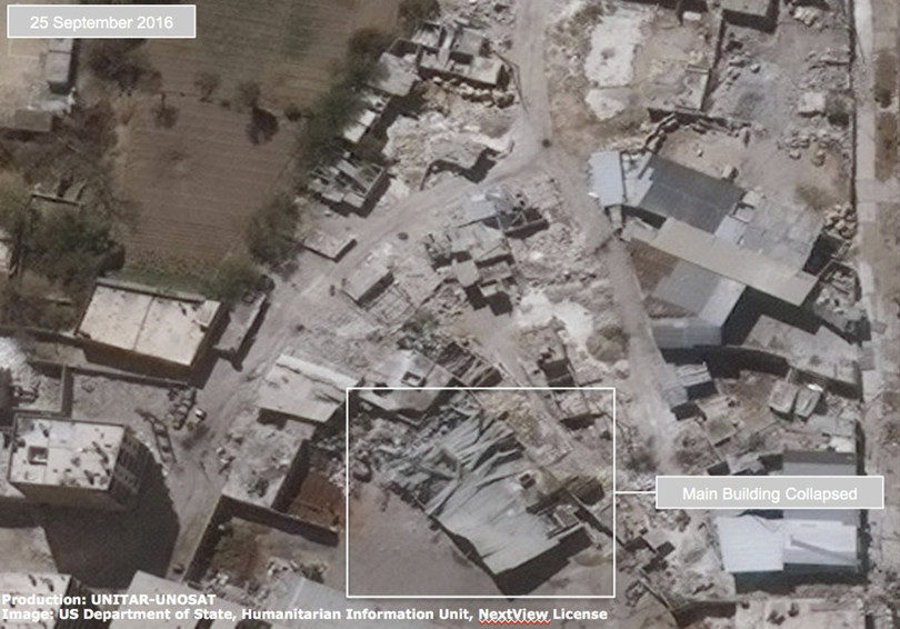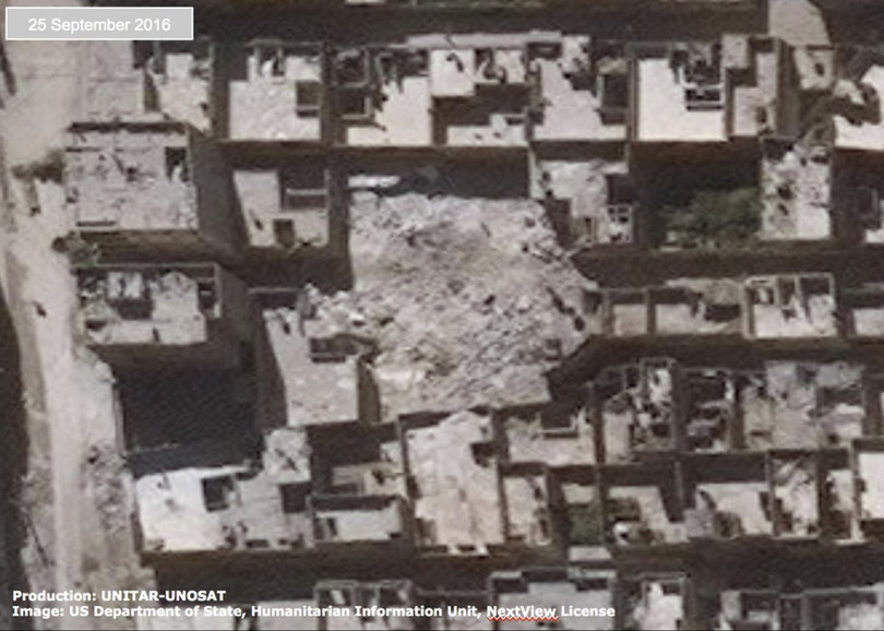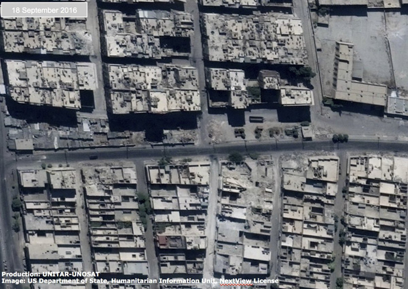 VietTimes -- Liên Hợp Quốc vừa công bố các bức ảnh chụp từ vệ tinh về "chảo lửa" Aleppo tan hoang sau các cuộc không kích. Từ khu công nghiệp ở Karm ad-Daa, thành phố Aleppo, trung tâm thể thao ở quận Owaija, hay những ngôi nhà dân đều chung một cảnh hư hại, đổ nát nặng nề.