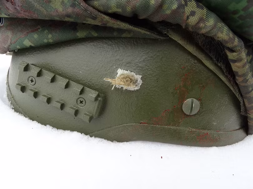 Viên đạn không xuyên được, làm xước một miếng lớp vỏ ngoài của mũ bảo hiểm, phía trong mũ hoàn toàn không bị tổn hại. Binh sĩ cho biết, có cảm giác như bị đấm trúng bằng găng tay, hoàn toàn không bị chấn động mạnh hay bị thương.