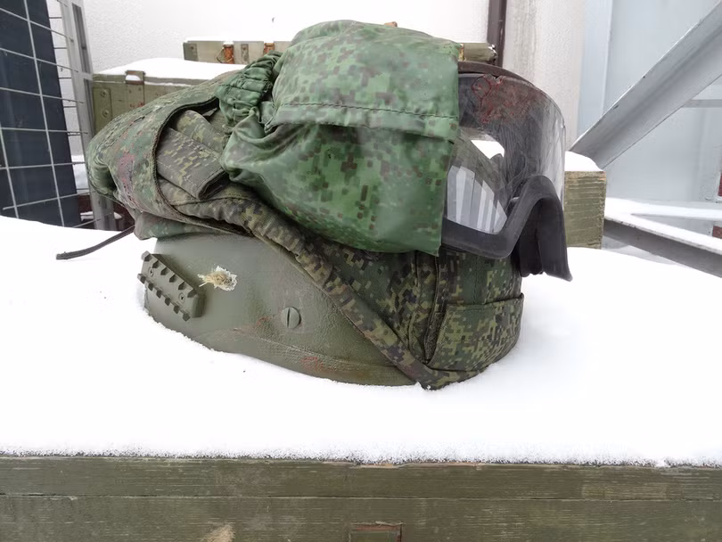 Trong một trận đánh đêm khoảng tuần trước (08.01 – 13.01) một binh sĩ Donetsk đã bị trúng một viên đạn của lính Ukraine . Từ kinh nghiệm và những kết quả bắn kiểm tra mũ bảo hiểm, vết đạn bắn được xác định là đạn AK cỡ nòng 7,62 mm (có thể được bắn ra từ súng AKM hoặc một loại súng tương đương).