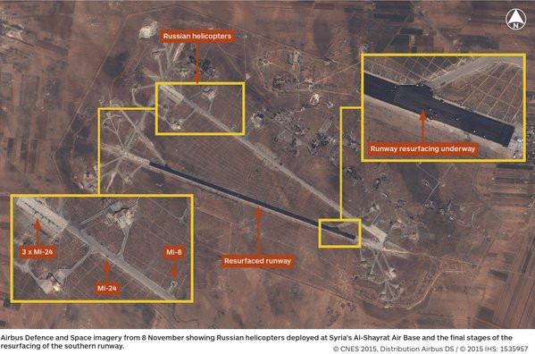 Trước đó, Bộ Quốc phòng Nga đã bác bỏ thông tin hình thành ở Shayrat căn cứ không quân Nga mới ở tỉnh Homs. Nhưng trên thực tế căn cứ không quân tiếp tục được trang bị thêm các loại phương tiên, một phân đội hải quân đánh bộ và chuyên gia quân sự Nga đã có mặt đảm bảo an ninh và xây dựng đài chỉ huy bay.