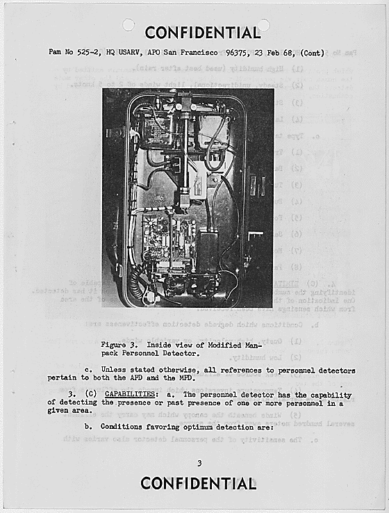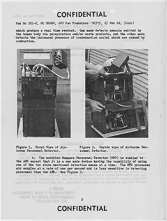 Bản báo cáo của sư đoàn 101 nhấn mạch việc sử dụng các máy dò tìm “đánh hơi” rất có ích cho việc rà soát lại các thông tin tình báo cho biết về khu vực có các hoạt động của lực lượng du kích Việt Nam.