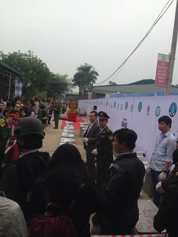 Theo đại diện Ban Tổ chức: "Lượng ngà voi và sừng tê giác này là tang vật của các vụ buôn bán trái phép bị tịch thu. Phương pháp tiêu hủy thực hiện theo công đoạn nghiền nhỏ, đốt trong lò đốt cháy thành tro 100%, sau đó chôn lấp toàn bộ tro. Địa điểm tiêu hủy tại huyện Sóc Sơn, Hà Nội".