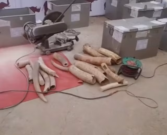 Ngà voi bị phá hủy sau đó đem đốt